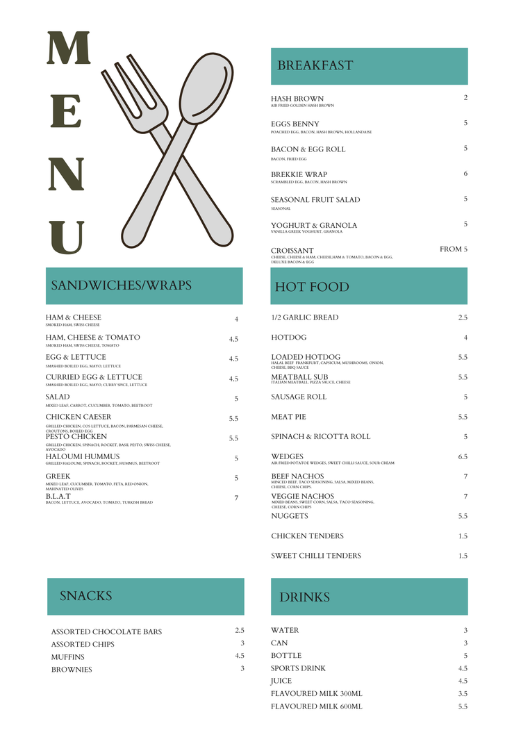 Canteen menu